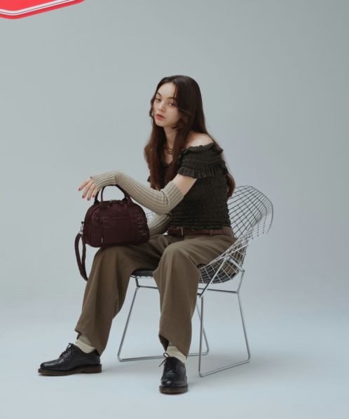 The ALF series of padding bags is made from matte nylon twill fabric. The semi-transparent rubber anello logo printed on the front adds a subtle touch to the design. The double-sided water repellent coating means you can go out safely even on rainy days. The bag is neither too big nor too small, making it the perfect size for everyday use. The rounded silhouette matches the fluffy feel of the padding perfectly!